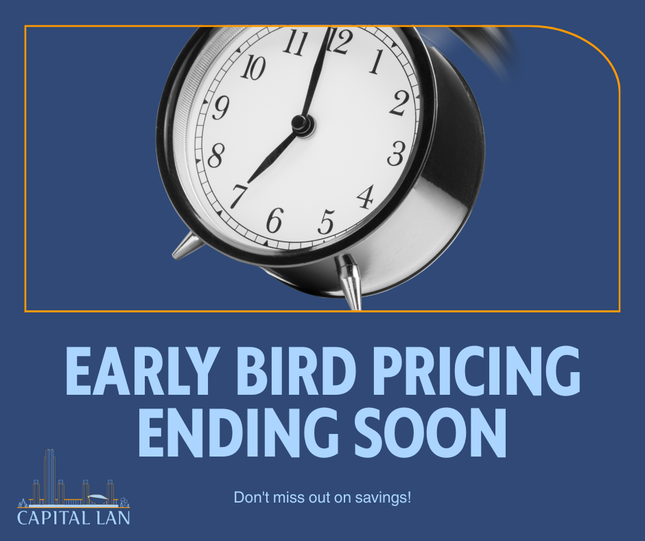 Mastric Posted April 23 Posted April 23 Early-Bird pricing for Capital LAN 2025 ends tomorrow—once the clock strikes 5pm-ish, badges jump $10. Don’t wait! 🎟️ Grab yours now → Tickets.CapitalLAN.com 🗓️ Event: July 24–27 · Hilton Garden Inn Troy, NY Tag your squad, lock in the savings, and we’ll see you on the LAN floor!